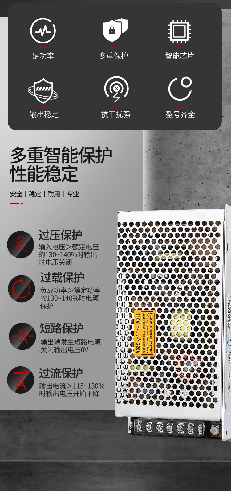 公司开关电源产品具性能稳定、安全可靠、使用寿命长等特点。