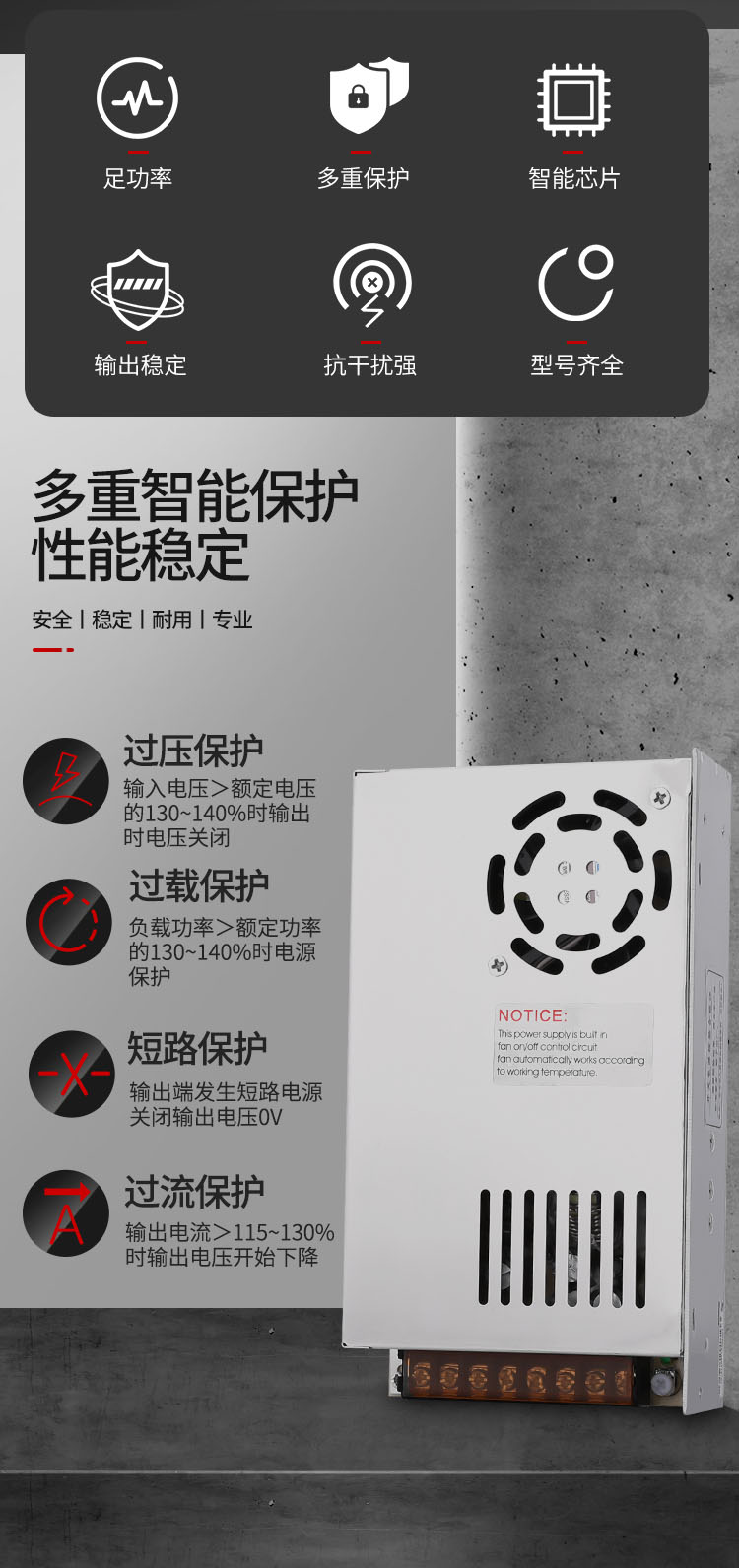 公司开关电源产品具性能稳定、安全可靠、使用寿命长等特点。