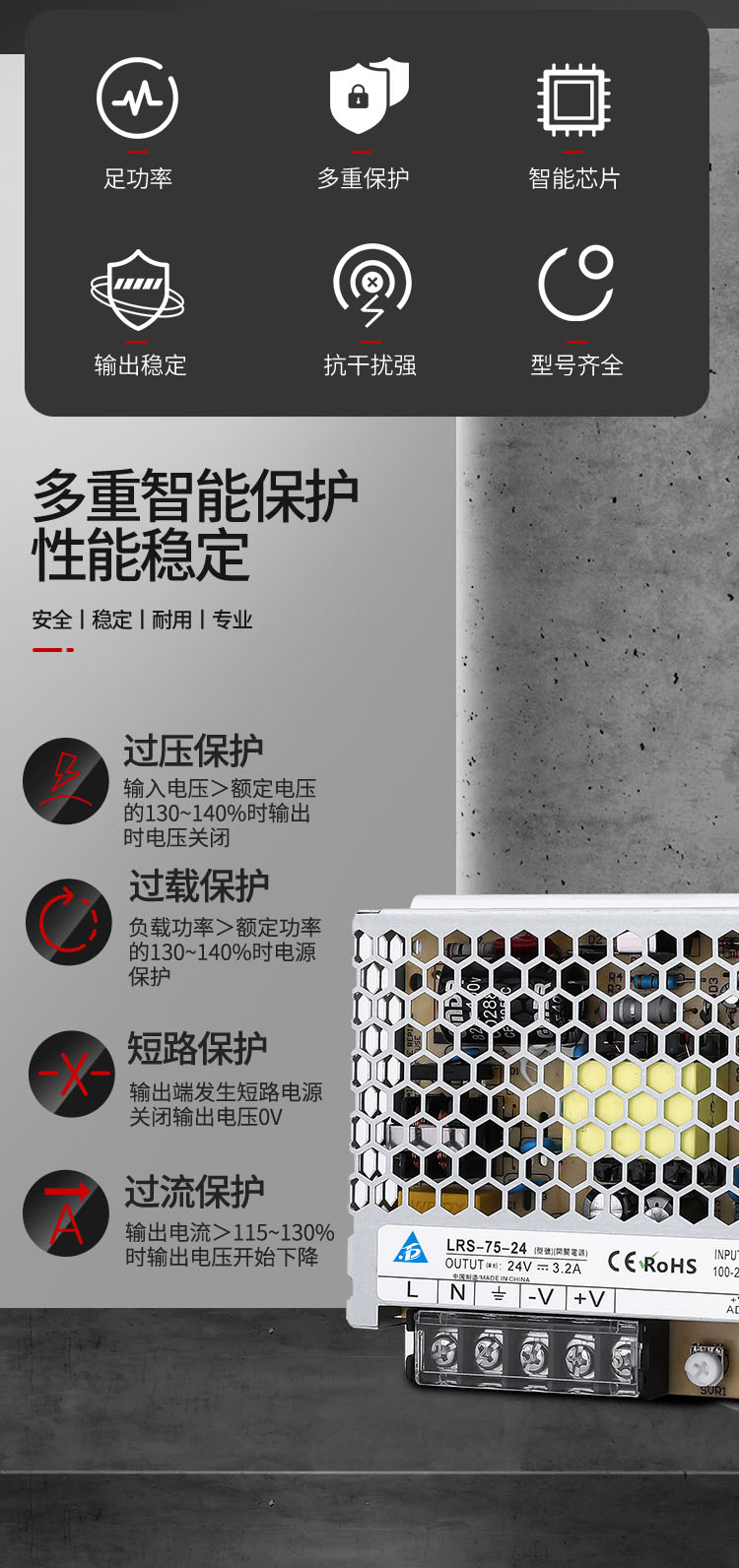 公司开关电源产品具性能稳定、安全可靠、使用寿命长等特点。