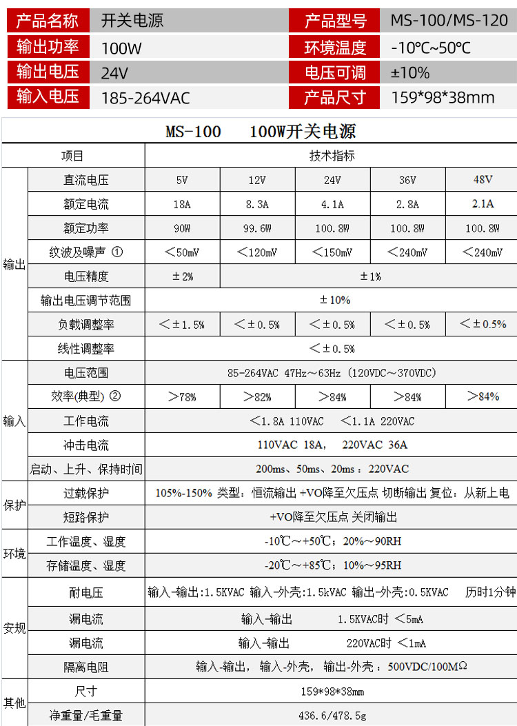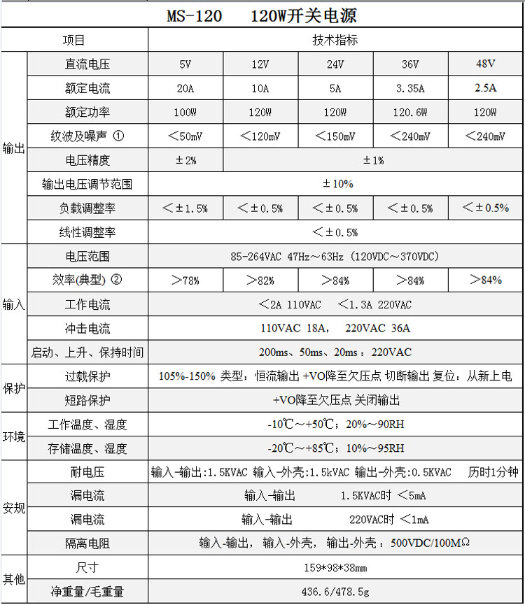 MS-100/MS-120开关电源