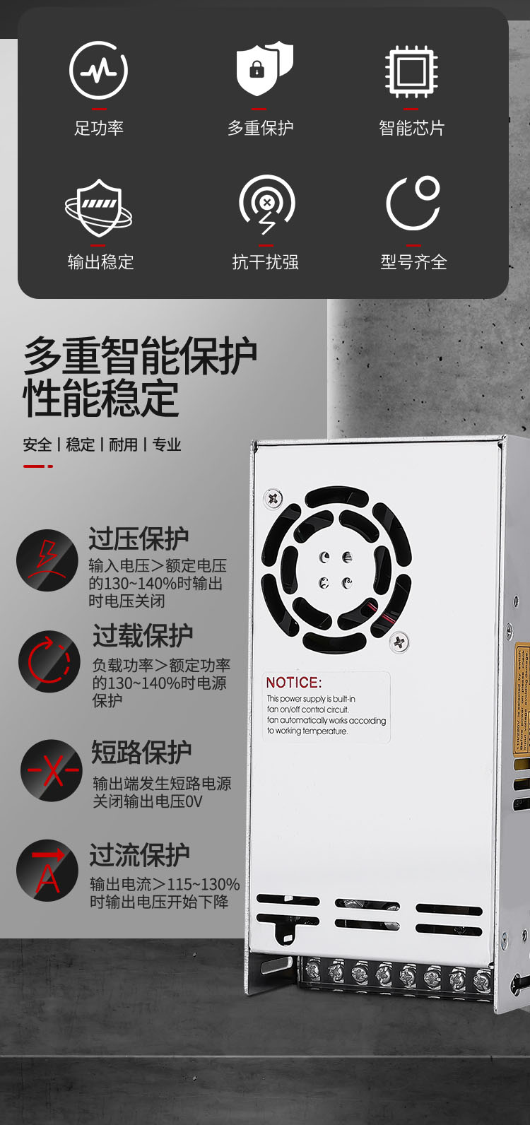 公司开关电源产品具性能稳定、安全可靠、使用寿命长等特点。